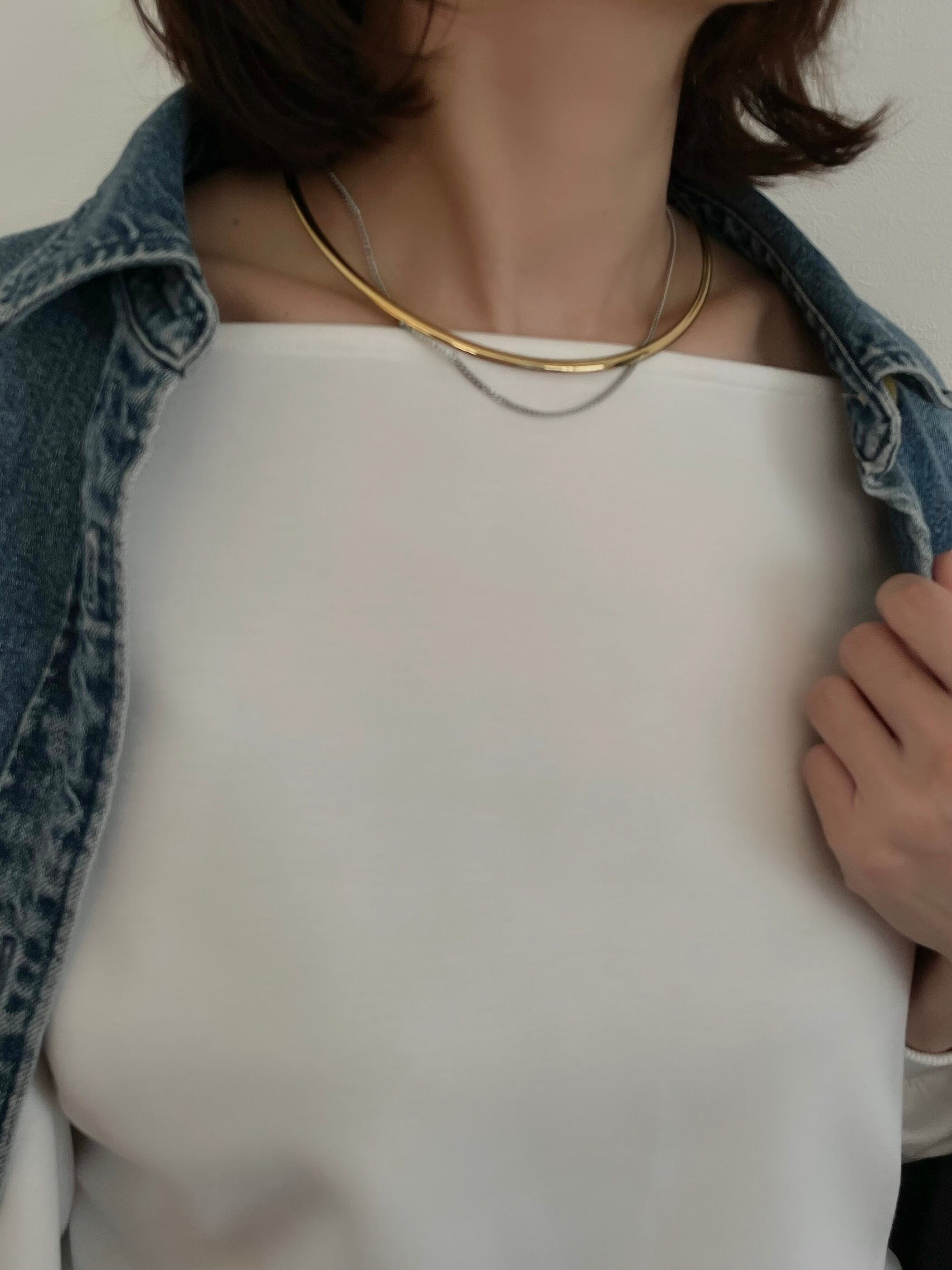 メタリックな滑らかで美しい曲線ラインをデコルテに沿わせ、しっとりとチェーンを纏う。